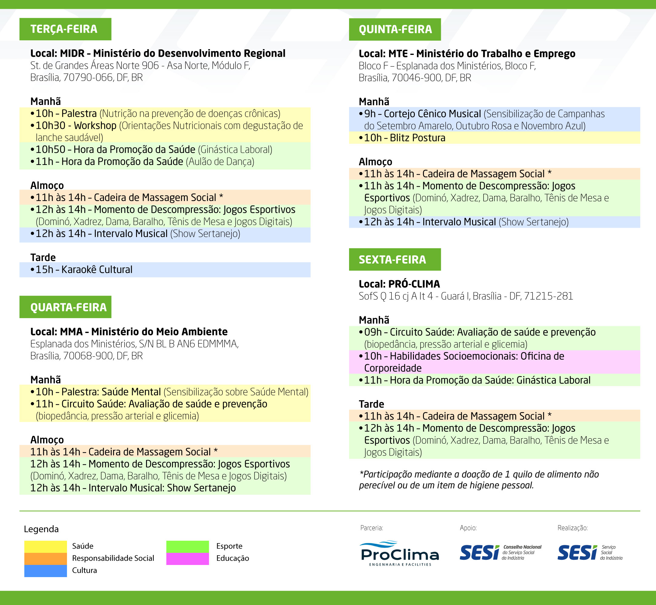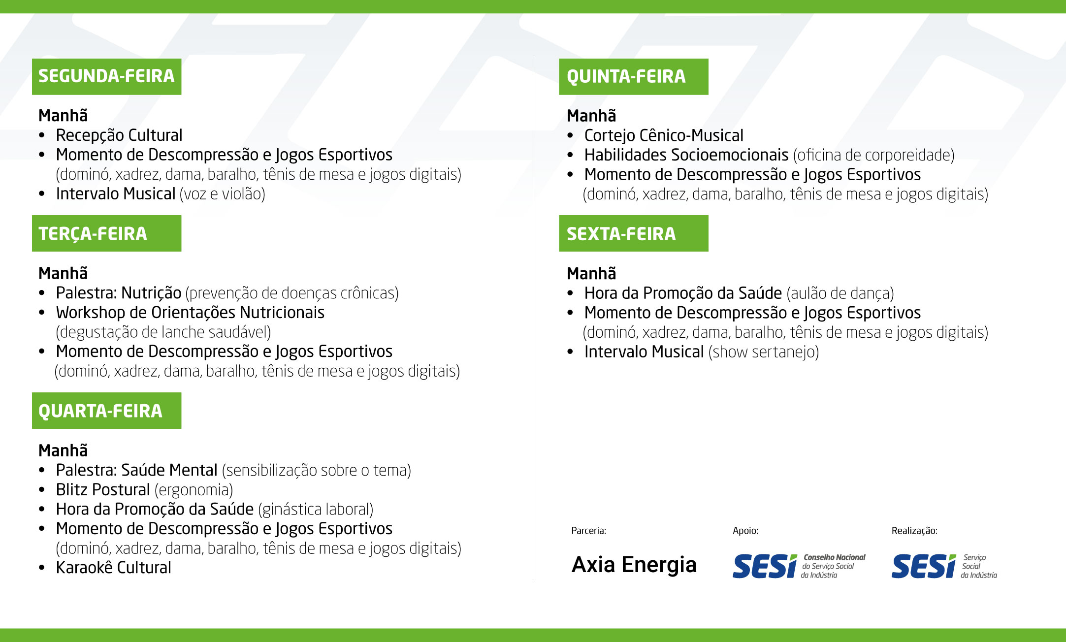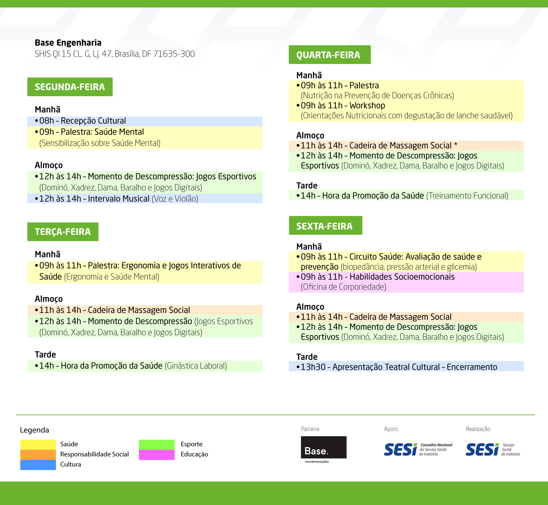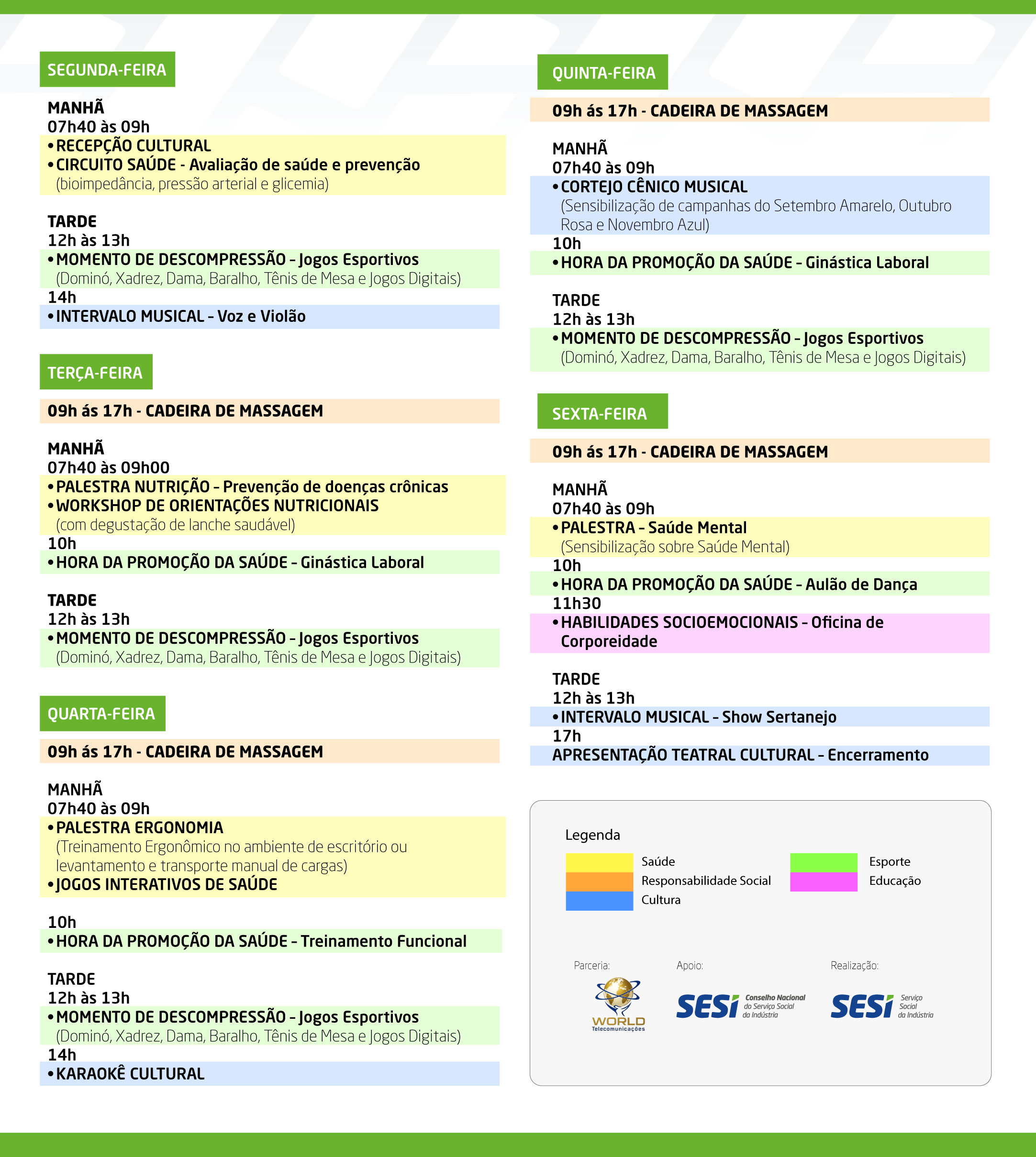 Vamos levar uma programação especial de saúde, cultura e bem-estar ao seu ambiente de trabalho para melhorar sua qualidade de vida.